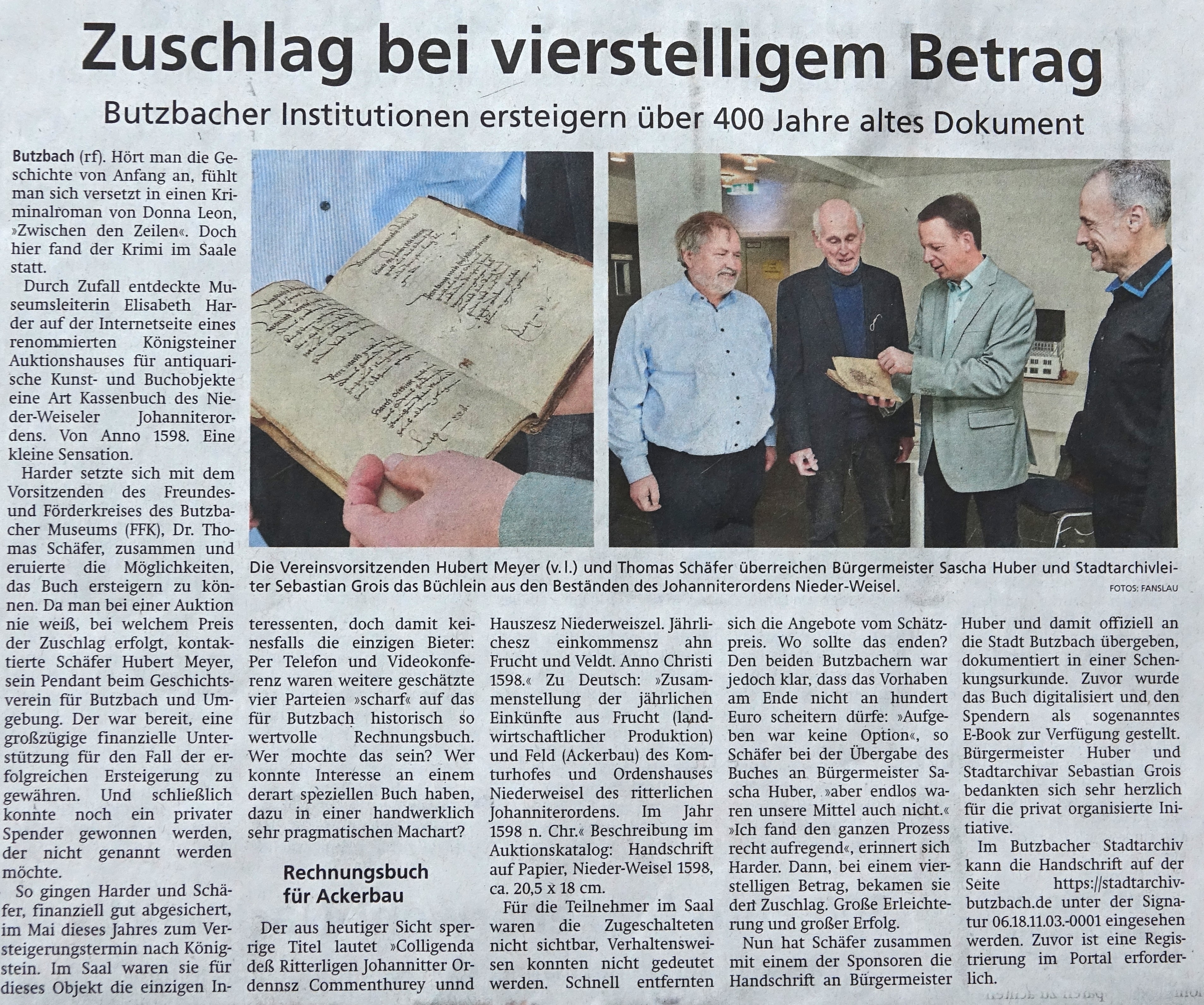 Zur Jubiläumsfeier neue Vitrine - Butzbacher Zeitung 03.12.2021 - Bericht