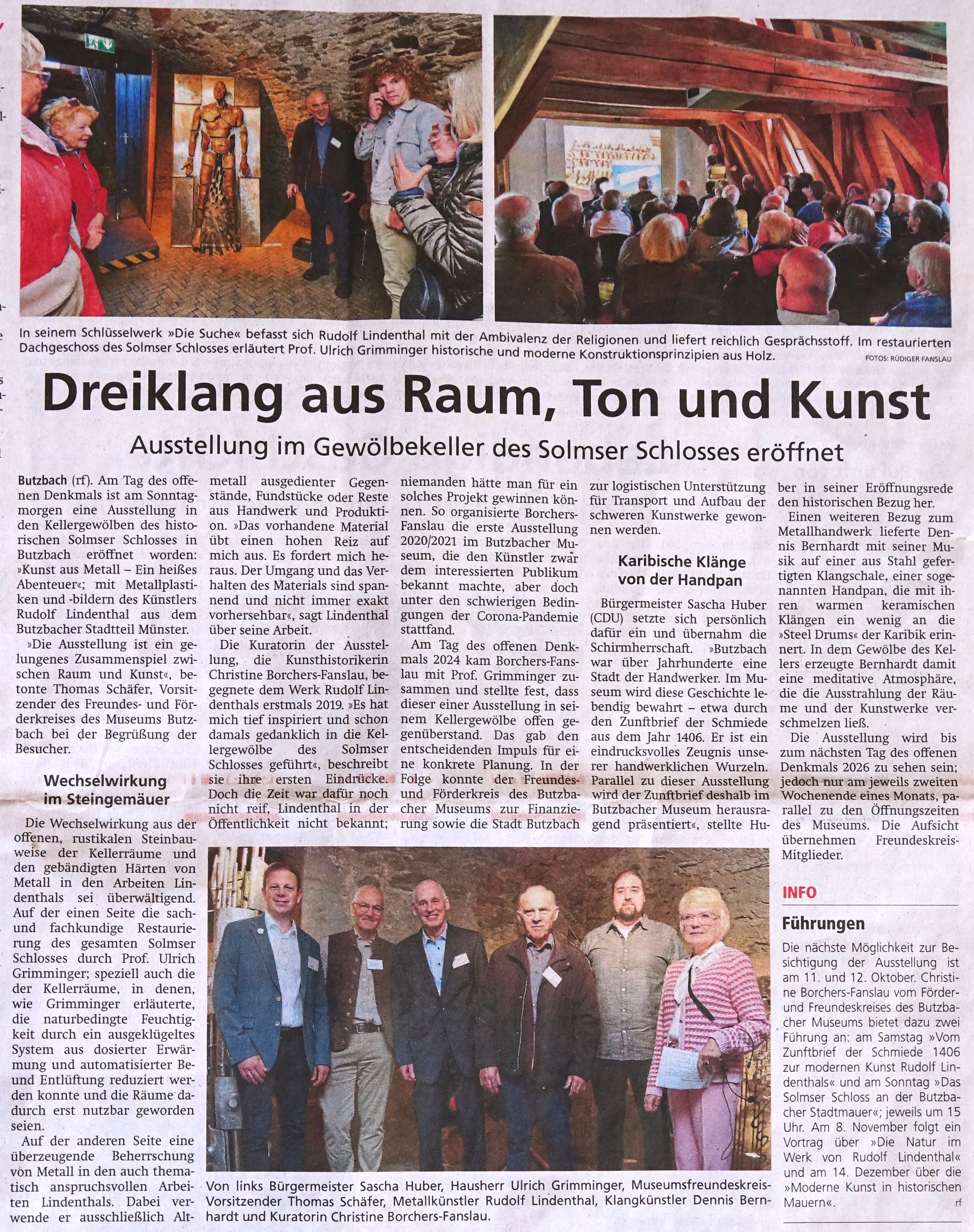 Eröffnung der Ausstellung „Rudolf Lindenthal – Kunst aus Metall, ein heißes Abenteuer", BZ vom 16.09.2025 - Bericht
